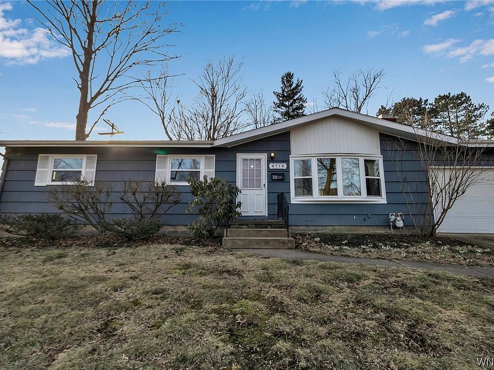 4 Bedroom ranch situated in the beautiful Forest Glen neighborhood. This home features 2 full baths with half bath in basement, spacious floor plan with beautiful original hardwood floors and natural lighting throughout. Enjoy the WB fireplace in the family room with open setting to the roomy kitchen and dining combo, perfect for entertaining. Large stamp concrete patio overlooks a wooded, fenced in backyard. Several updates throughout include new replacement windows and new boiler (Nov '23). Walking distance to Glen Meadows park and just minutes from Hamburg Schools.