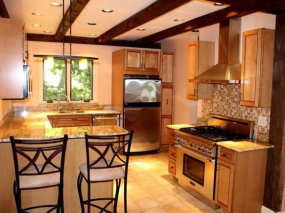 - Kit Dscrp: Dining Area, Countertops - Stone/Granite/Solid, Flooring - Stone/Ceramic Tile, Stainless Steel Appliances, Recessed Lighting, Ceiling - Beamed, Gas Stove, Peninsula