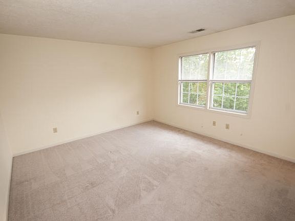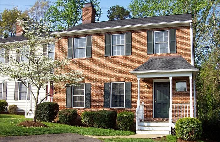 The three bedroom floor plan at Brandywine offers plentiful space. The first floor features a parquet entryway that leads into the sizable living room, which includes an intricately detailed fireplace with marble inlay. The guest bathroom can be found on the first floor making it easily accessible for guests. There is a dining room with a brass chandelier just off of the kitchen and living room, and a chair railing surrounds the space, giving it a more formal feel. The kitchen is fully equipped, and there is a space-saving washer and dryer tucked behind closet doors on the first floor. The master bedroom is located on the second floor, and it is very spacious and includes a private full bathroom. The other two bedrooms are comparable in size, with one full bathroom located in the hallway. Residents will enjoy a private driveway for parking and a generous patio space in the backyard.