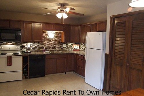 116 Broadmore Rd., SW Cedar Rapids. You MUST SEE this spacious and super sharp split foyer. Over 1800 square foot finished! 4 bedrooms and 2 full baths. Just step inside and you will find the warms shades of neutrals are quite inviting and contrast well with the white crown molding. The new birch kitchen has special touches like mosaic and stone tiled back splash, under cabinet lighting, crown molding and ceramic tiled floor. Check out the the huge pantry and all energy efficient appliances are included. As you tour this lovely home you will find brushed nickel and pewter lighting, ceiling fans and hardware throughout. Two of the bedrooms have gleaming hardwood flooring, it is even under the carpet throughout the main level. The main bathroom is mission style and has a convenient clothes shoot.The lower level is open to the foyer and has new carpeting throughout! Wall to wall built in shelving is great for all of your entertainment items. This level also has a 4th bedroom and a bonus room that would be great as a "man cave" or theater room. Step inside the "spa bath", it is as big as a bedroom with lots of space and slide out shelving in the vanity.Low maintenance with the newer energy efficient doors and roof. New energy efficient double hung windows just installed! Plus furnace, central air and siding are newer as well. Outdoors you will find a stained 2 level deck and big fenced yard. AND behind you is an elementary school. Wow, no neighbors behind you! Over sized one stall garage even has a work bench for the guys and plenty of off street parking. Lots of easycare perennials to add color to your yard.Walk to Coolidge Elementary or Taft Middle School. Jefferson High School is nearby. Walk to Stoney Point YMCA and Cherry Hill Aquatic Center. Broadmore is only 2 blocks long and has lots of friendly families. Shopping and restaurants are nearby.This beautiful home can be yours for just $139,900.00. It is available "rent to own" for just $1150 per month, plus option fee, which is 100% applied to the purchase, is purchased within 12 months. RENT CREDITS AVAILABLE. OR can be purchased on contract (seller financing) OR financed through your favorite lender. Call 319-350-4072 for more details. E- Z QUALIFY. Ugly Credit OK!CALL or TEXT 319-350-4072 for a private tour.If this lovely home isn't "just what you are looking for", then go to www.CedarRapidsRentToOwnHomes.com or call 319-350-4072 for more custom homes in the Cedar Rapids/Marion area.