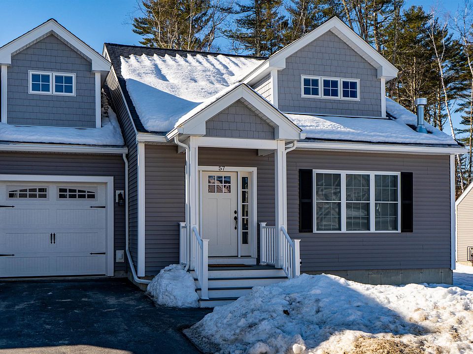 Welcome to Brook Hill. Meredith’s premier luxury townhomes. Nestled on a hill with beautiful mountain views, walking trails, water fountain and common green spaces. These sophisticated modern townhomes offer a highly desirable lifestyle in lovely Meredith, NH. Each elegant home showcases an open concept layout. Enter through the front door into the living room with soaring cathedral ceiling makes you feel right at home. Natural light accentuates the gorgeous red oak floor gleaming all the way down to the sunroom. The Ensuite first floor master bedroom is well designed with a large walk-in closet, dual vanity and tiled shower. As you enter the home through the one car garage you will step into the mudroom, laundry room and ½ bath. This is one floor living at its best! The kitchen/dining area is sleek with granite counters, high end cabinets, stainless steel appliances and a large center island. The kitchen flows into the bright sunroom with sliders out to the deck and nice views of the surrounding natural beauty. The oak staircase brings you up to the second floor with a large loft area overlooking the living room. The second floor also features an ensuite guest room with full bath, study and bonus room above the garage. There is also a full-sized basement with lots of storage. Phase l is sold out. Now selling phase ll. This is an end unit abutting the woods. Framed not completed. Many standard options and upgrades available. Public Open house every Saturday from 10-12