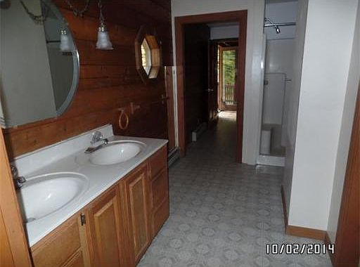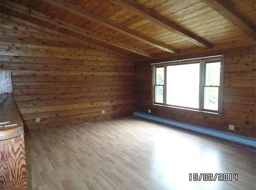 Oversized three bedroom log home. Tongue and grove finished pine board cathedral ceiling with exposed beam in huge open concept living room, kitchen and dining area. Multiple sky lights let the natural light shine in. Nice woodwork through out home. 3 bedrooms, 2 full baths, laundry conveniently located on first floor. Deck leads to wooded back yard. Partially finished basement. All offers are subject to the approval of the seller. No offer is considered accepted until the appropriate authority within the seller has executed a Purchase and Sales Agreement.
