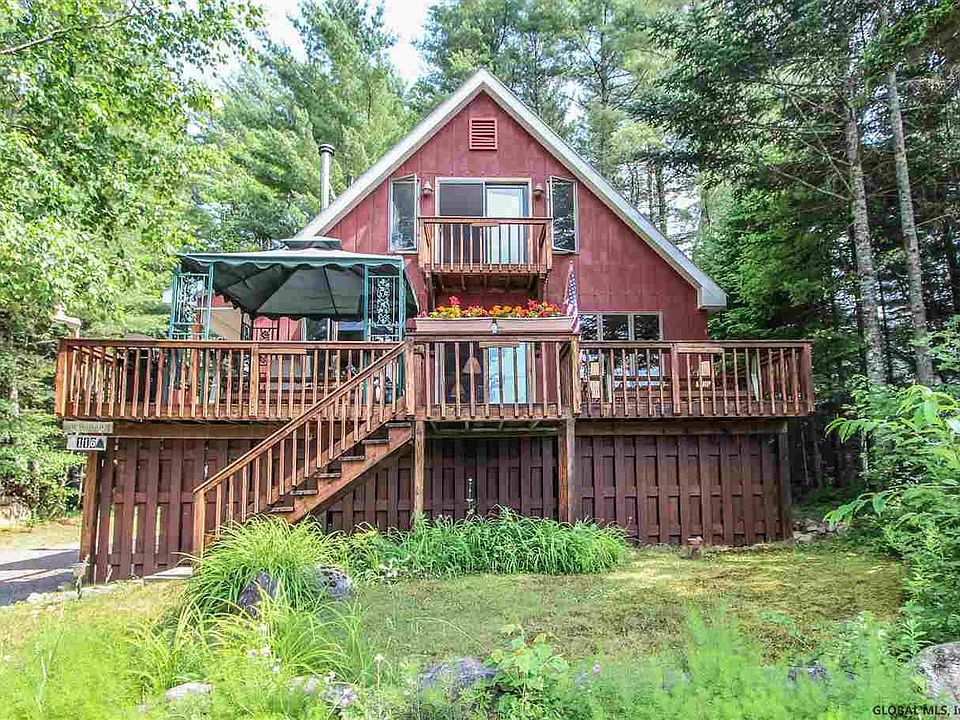 This Adirondack style home with waterfront lake rights is situated directly across from the lake allowing for stunning lake views and very easy access to Sacandaga Lake. Open style floor plan with a brick wood burning fireplace is great for entertaining and family gatherings and the master bedroom balcony overlooking the lake is the perfect spot to enjoy your morning coffee. The full basement has a one car garage and lots of extra storage area. Located on quiet side road with a short drive to Speculator.