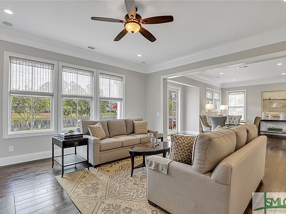 Join the good life in Westbrook at Savannah Quarters in this beautiful 5 bedroom 4.5 bath on a quiet cul de sac with lagoon view! Downstairs you will find a high ceiling dining room, gourmet kitchen with stainless steel appliances, breakfast room, and large family room complete with fireplace and built in shelves. Also, a full laundry just off the kitchen with utility sink and storage galore. The master suite located downstairs has a large bath, double vanity, soaking tub, walk-in shower and includes a spacious walk-in closet with wood shelves. Upstairs, find a junior suite with full bath, 2 bedrooms that share a full bath and a 4th bedrooms/office. A bonus room with wet bar and another full bath complete the upstairs. A 2.5 car garage is ready for the golf cart! When you are done enjoying the many amenities, relax on your covered back porch or brick paver patio, shimmering lagoon view, and landscaped yard adorned with flowering perennials, a haven for songbirds and butterflies!