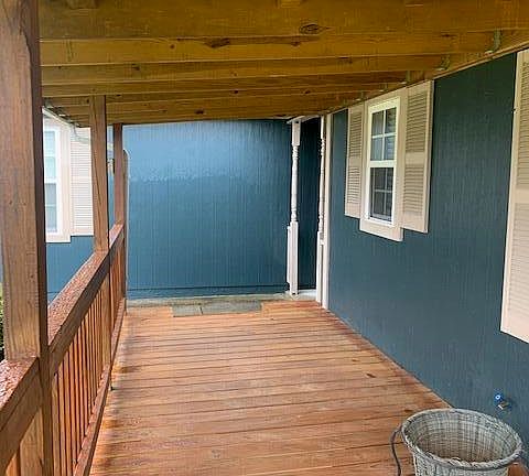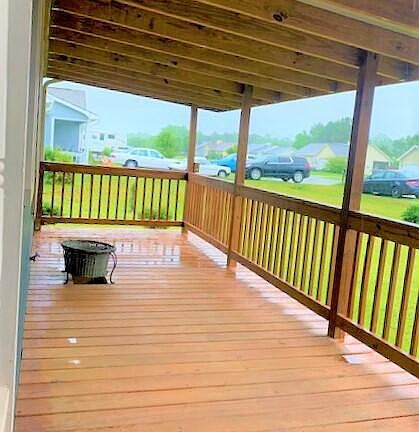 A large covered front porch to enjoy a good cup of coffee and a large covered rear porch, ideal for outdoor enjoyment and entertaining. Also included is a beverage cooler while enjoying a evening breeze with friends and family. A large fenced in back yard is perfect for pets, secure play area for children and enough room for yard activities for all. A patio with connections for a hot tub or other uses. A Open Floor plan (area. Kitchen, Dining, and Living Area with a wood burning