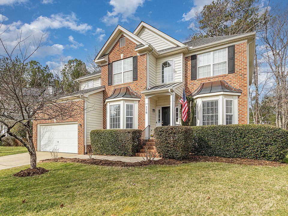 Charming Chapel Hill brick residence nestled at the end of a private cul-de-sac. This home offers 4 bedrooms and 3 full baths, featuring a convenient setup for in-laws or guests with a downstairs bedroom and full bath. Notable features include hardwood floors, an open floor plan, a spacious kitchen with stainless steel appliances, an island and eat-in area, a large family room with built-ins, an upstairs loft, a generously sized master bedroom with a sitting area, luxurious bath and huge walk-in closet. Large deck overlooks a fenced-in backyard. Brick front façade plus easy care siding. High tech home with high-speed Google Fiber (up to 8 GB) and two Nest thermostats (both upstairs and downstairs Enjoy the advantages of Chapel Hill/Carrboro schools in a location providing easy access to UNC, Duke, and I-40 for RTP!
