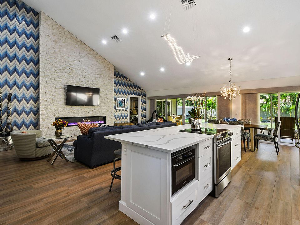 Contemporary beauty in The Ridge! Redesigned for today's lifestyle! Open floor Plan. Center island kitchen w/cooktop. White Shake style cabinets, all wood, soft close drawers, Plenty of cabinet space. Porcelain wood-like flooring tile. Bath tile- white subway w/attractive accents. Floor to ceiling decorative neutral stone wall w/fireplace inlay. Large master bedroom has his/hers custom closets. Bath w/oversized step in shower. Beautifully landscaped yard with a small paver patio. Room for Pool. Close to community pool, hoops, and tennis. Central location in The Ridge. Doors & Trim-2 panel shaker style closet doors, 6'' baseboard molding throughout. French door Fridge, high end appliances. Impact glass & LED lighting throughout! Close to beaches and Publix.