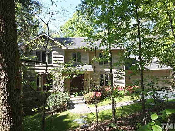 Are you a nature lover who wants total privacy? Look no further. This Goforth-built home sits on a prime private Ironwoods lot backing to Bolin Creek w/a terrific view. You can hear the creek from the deck & inside the house! Enjoy the outstanding sun rm w/panoramic view of the creek & forest or sitting in the hot tub taking in the serene environment. The hardwd flrs are lovely, as are the 4 generous size bedrms. Huge walk-in storage. Lg play area in back. Enjoy access to Bolin Creek & miles of trails.