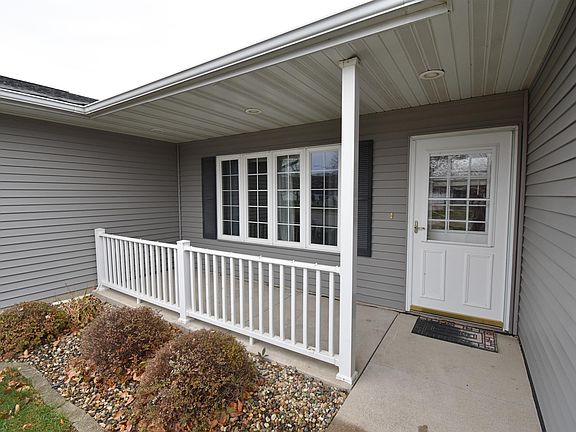 Offer Pending Subject to Sale-Backups Welcome. Say goodbye to snow shoveling and lawn mowing–this is effortless living at its best! This one-level condo boasts a zero-entry, handicap-accessible layout. Step into the spacious living room with picture window overlooking the covered front porch and enjoy the generous kitchen and dining area with Corian counters, breakfast bar and French door leading to a rear concrete patio with nice view. All appliances are included! The master bedroom features a sizable walk-in closet and private bath with a low-threshold shower. The second bedroom offers ample closet space and has its own entry to the main bath. The laundry room is conveniently located between the kitchen and the two-stall attached garage. Nestled in Cardinal Court, this location is perfect, offering close proximity to shopping and major highways. You'll enjoy peace of mind as your monthly association fee of $150 covers insurance and maintenance for the exterior and common areas. Additionally, you'll have access to the Community Building, a fully-furnished space ideal for family and social gatherings.