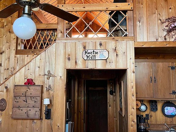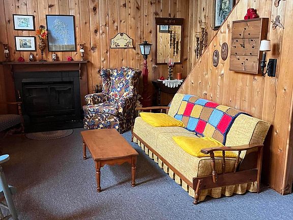 This cozy A frame cabin is a perfect vacation destination. It has an open floor concept with a fireplace for those cold winter evenings. The main floor offers Kitchen, Livingroom, two bedrooms and a full bathroom There is a generously sized loft for extended family or guests. It has beautiful cedar ceiling, beams and walls Needs some exterior TLC. This property is close to major highways, shopping, restaurants, ski resorts, waterparks and casinos.