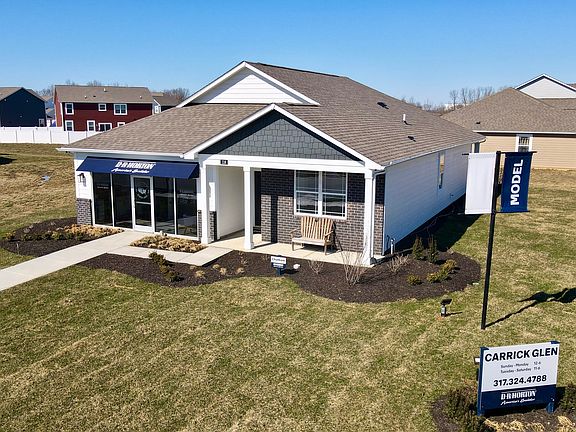 Model home for sale in Carrick Glen! D.R. Horton, America's Builder presents the Chatham plan, available in Pendleton, Indiana. This home provides full irrigation, custom landscaping and paint, finished garage, 9-foot ceilings, 4 bedrooms and 2 baths in a single-level, open living space. The main living area offers solid surface flooring throughout for easy maintenance. Three large bedrooms are situated in the front of the home with one bedroom, which features a large walk-in closet and luxury bath, is situated in the back of the home for privacy. Enjoy entertaining in the spacious kitchen with a large built-in island, quartz countertops, and beautiful 42-inch cabinetry. The covered patio in the back of the home offers a great space to gather with friends and family as well. The home includes America's Smart Home Technology featuring a smart video doorbell, smart Honeywell thermostat, Amazon Echo Pop, smart door lock, Deako light switches and more. While out and about, explore the community park and playground, or walk across the street to Falls Park. Just moments away you will also find the public library, South Madison Schools, and the charming shops and restaurants of the downtown area.