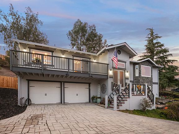 Custom home with over 3000 square feet of gracious living space features 4 bedrooms and 3 full baths, formal living and dining rooms with soaring vaulted ceilings, a remodeled gourmet kitchen and more! This home boasts 3 fireplaces spectacular views, observations decks and terraces all nestled on a quiet court on nearly an acre of land. This is a rare gem. The primary retreat features a generous walk in closet, spa like back with zen patio, raised hearth stone fireplace and window bench taking in the views. You won't want to leave. The main level features 2 bedrooms, 1 full bath, formal living and dining room and the heart of the home....the remodeled kitchen with wrap around granite countertops, abundant cabinetry, commercial grade appliances and the picture is complete with a wood burning stove! Rare find and amazing opportunity to own your forever home in desirable Ridgemark community!