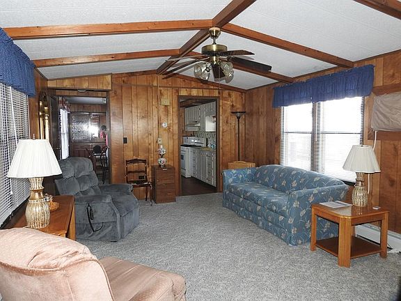Royal Crest Manufactured Housing Community, a 55+ PARK located in the coastal community of Wareham. A short drive to area beaches, Cape Cod Canal, Rosebrook Medical Center, Wareham Crossing Mall, houses of worship and much more. Quick highway access to Routes 28, 495, 195 & 6. Open floor plan with beamed cathedral ceiling living room with fireplace, 2 bedrooms and 1.5 baths. A large sun room offers peace and tranquility.