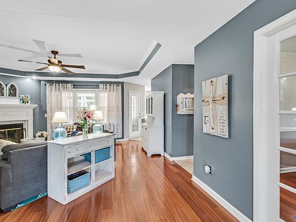 - Features: Ceiling Fan(s), Fireplace, Tray Ceiling(s), Wood Floor