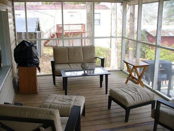 Charming and cozy 2 bedroom 1 bath cottage on private cove off Cedar Creek, Lake Sinclair. Living room has large picture window with beautiful view of lake. Large screen porch off the back perfect for entertaining friends and family. Eat-in kitchen with oak cabinets. Old heart of pine floors throughout. Includes a single boathouse. dock, sandy beach area and large back yard. Very quiet street and cove. When strategically furnished, this house can comfortably sleep up to 8 people. Easy access to Eatonton, Milledgeville, Gray, and Macon. *Owner's spouse is licensed real estate agent in Georgia.