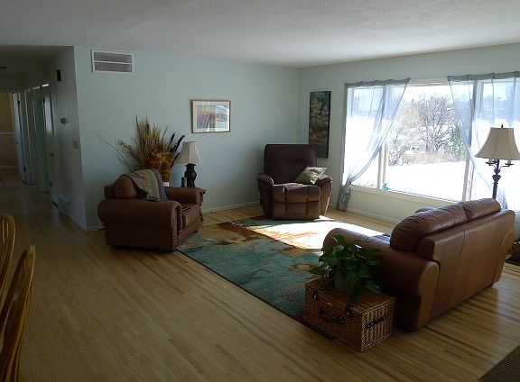Calm and relaxing, open living area with beautifully refinished hardwood floors, spacious kitchen with wonderful sunlight. Cozy sitting area in the kitchen with a gas stove. A main level study (or possible bedroom) with new carpet is ready to occupy. 3 bedrooms on the main floor as well as an updated full bath. A large mudroom with wooden lockers. The basement offers a newly carpeted and painted living area, a storage room, a completely remodeled full bath, a non conforming room and utility/storage room. Off the detached garage is a seasonal room that would be great for a hot tub or storage. Lots of off street parking and room for up to two vehicles in the garage. Come and see.