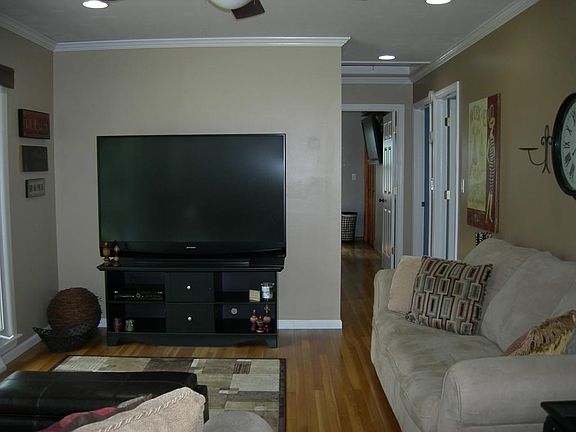 Meticulously kept 3 br ranch in Sandy Hill area of Chicopee. Gleaming hardwood floors throughout. Large floor to ceiling windows in the living room, replacement windows in all rooms. Kitchen with newer countertop with lots of work area, refinished cabinets, new vinyl floor. Refrigerator and electric range included.3 Large bedrooms, two with double size closets. Bathroom with ceramic tile walls and floor. Newer vanity sink, and access to the large linen closet in the hallway. Large basement with laundry area, washer and gas dryer included, and set tub, sump pump, and updated electric panel. Detached oversized one car garage with electricity. House is vinyl sided for easy maintenance. Fenced rear yard.