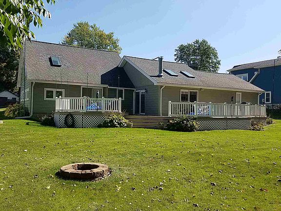PERFECT AT CLEAR LAKE: Enjoy golf cart-friendly Terrace Gardens association lakefront and pier with this completely remodeled and move-in ready, meticulously-appointed, professionally-maintained 2 bedroom Cape Cod. Near the member-owned private beach (with pier rights) and the public boat launch for easy access to Clear Lake's pizza, pub and ice-cream! Well-designed with a balcony overlooking both the living room (with cathedral ceiling and fireplace) and family room (with vaulted ceiling and bar), all with patio doors to the nearly 60 feet of deck for entertaining or relaxing. Other amenities include an attached 36x21 2-car finished garage with shop area, sink and extra attic storage, high efficiency gas heat and central air. This is a delightful, year-round, lake area get-a-way!