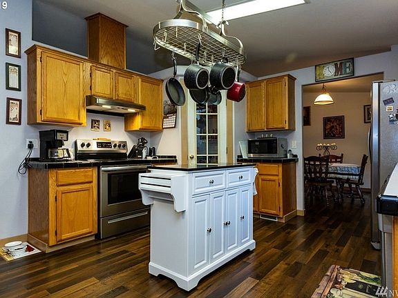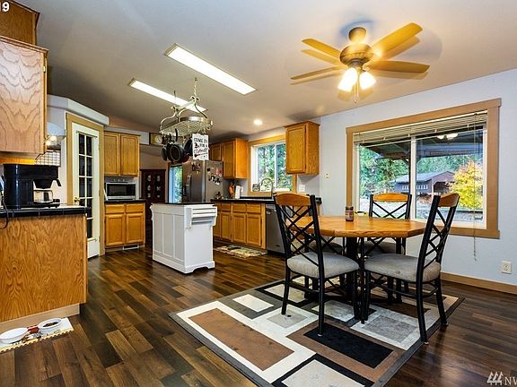 Pride of ownership in Castle Rock. This Home offers 3bd, 2ba, semi open floor plan, with a lot of room to entertain. Fire place and pellet stove. Newer carpet, laminate and updates through out. Front and back yard with sprinkler system, wired for hot tub and a huge 40x60 shop partially insulated with 220. RV parking and room for all the toys on one usable acre!