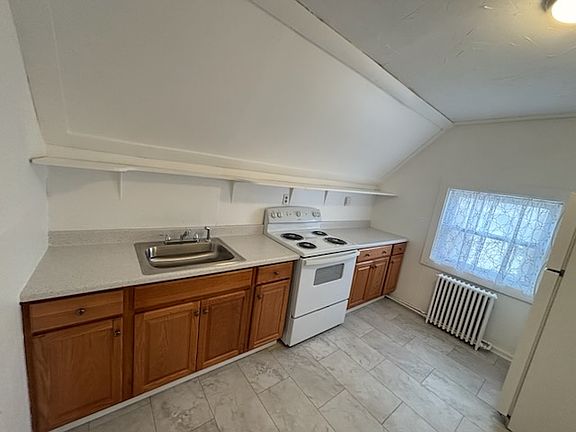 Warm & Cozy one bedroom Third Floor Flat with a bonus room (no closet) in Three family owner occupied three family house. Updated with new Kitchen, Flooring, Carpet and freshly painted. All utilities included. (Heat, electric, water and trash removal. Off street parking in private driveway. Shared use of large yard. Month to Month Lease. Owner pays gas, electric, water and trash removal. No Smoking No Pets