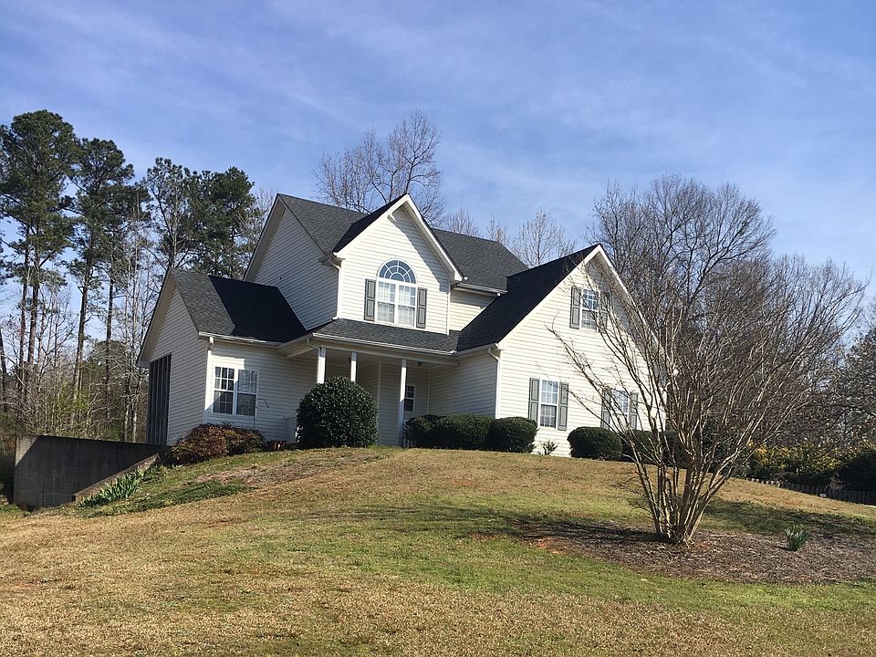 WOW! New beautiful wide plank flooring & plush carpeting throughout. Welcoming covered front porch with lots of space. Foyer is flanked by a formal living room which may also be used as a formal dining room. Straight ahead is large kitchen area with large breakfast room area that is currently used as a formal dining space. The kitchen includes very nice stainless steel appliances & enjoys ample counter and cabinet space. It opens to a large family room with fireplace. Also a half bath & large laundry on main level. Upstairs is the master suite, 2 more BRs & a very large bonus room which may be used as a 4th BR. The unfinished basement is wide open for opportunities with high ceilings & double door access to side yard. Amenities include pool, tennis & park.