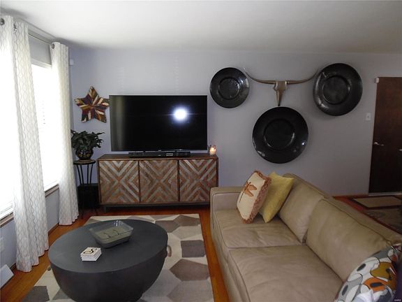 Don't pass this one by! Conveniently located, move-in ready, well maintained brick ranch. You will love the hardwood floors the moment you walk in the door. The home has newer thermal windows, newer roof, new carpet, fresh paint, and an updated bathroom. Kitchen comes equipped with appliances and the deep garage is where the laundry area is located. Master bedroom will accommodate a king size bed. The yard is well manicured with a concrete patio out back great for relaxing or entertaining. There is a convenient storage shed and the backyard is completely fenced. This home is just minutes from St. Louis and several major highways. Great home tucked away in a quiet neighborhood. Home warranty included. All information including, square footage, lot size, school district, etc. to be verified by buyer.