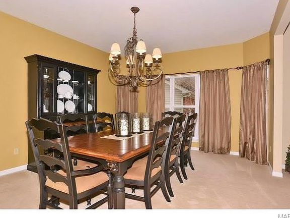Striking Amber Meadows 1.5 story w/beautiful curb appeal features 4 bedrooms, 5 baths & approx., 4500 sq. ft.on 3 levels of luxury living! Gorgeous granite counter tops, high end stainless appliances, custom cabinetry, & warm hardwood flooring make this kitchen the heart of the home! Entertaining is so easy w/the open floor plan kitchen-hearth/family rm-breakfast area & step. Dining...you will love this!!!Custom amenities include brick front elevation, 9, vaulted, & soaring 2 story ceilings, hardwood, travertine, ceramic & engineered/hand scraped hardwood flooring(LL), Bay &Palladian windows, built in cabinetry, 2 gas fireplaces, Zoned HVAC, plant shelving, custom silhouette blinds & stylish oiled rubbed bronze fixtures /hardware. Set on nearly 1/4 acre lot with vinyl fencing paver patio, &canopy covered composite deck! This home is conveniently located just minutes from shopping, dining, &quick access to interstate 40/64 - 70 or the great page ave. extension (364) Easy commute !!