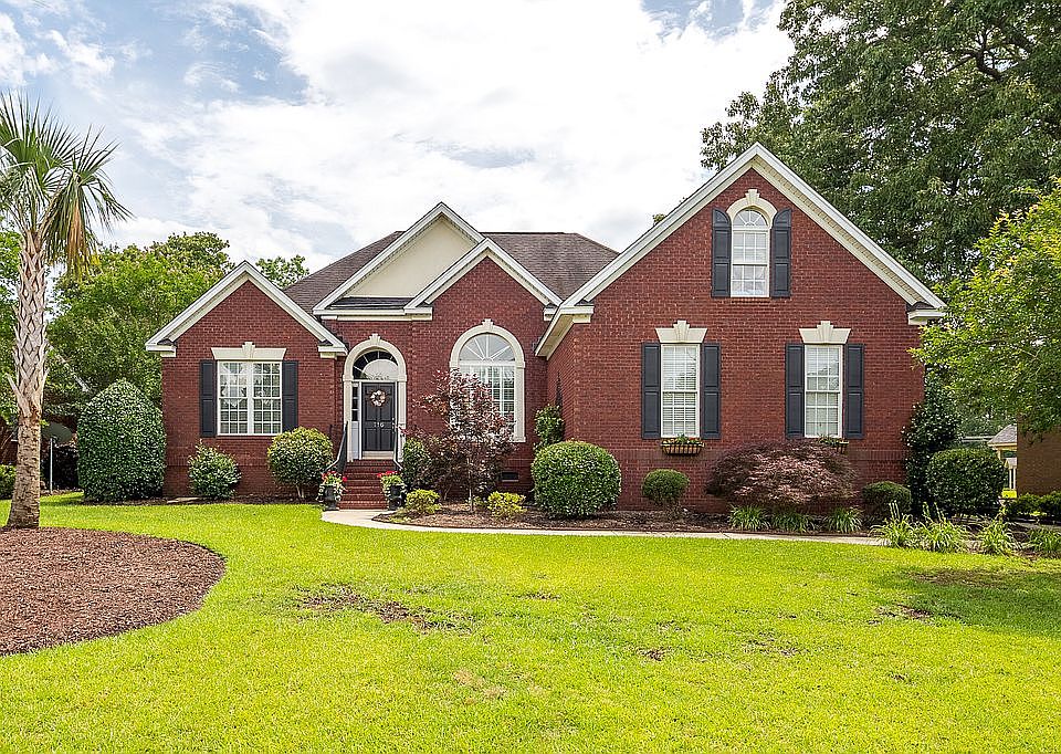 Call Kevin Fields, 803-466-0031 for details. Like new, all brick home located in quiet golf community on Charwood Golf Course. Features include open floor plan; hardwood floors and plantation shutters through main living areas; dining room w/high ceilings, wainscoting, and molding; living room w/gas log fireplace, double tray ceiling, heavy molding, and recessed lights; eat-in kitchen w/tile floor, granite counters, tile backsplash, stainless steel appliances, and pantry cabinets; large, walk-in laundry; mud entry from garage; split floor plan for privacy; 3 bedrooms + large FROG; master suite w/ tray ceilings, French doors to master bath, jetted tub, separate shower, water closet, and walk-in master closet with wood shelving/system; large frog w/under eave storage; screened porch w/classic broken tile floor; large private backyard w/lush landscaping, crepe myrtles, flowering trees, and new dry-laid paver patio by Archadeck (2018); and 2 bay garage plus extra pull-off parking. The backyard is super private with no neighbors directly behind. Additional recent updates include new stainless-steel kitchen appliances (2017), new carpet (2020), updated landscaping w/pine tree removal and 3 new palms (2018), and ceiling fans and lights / chandeliers throughout house (2017).