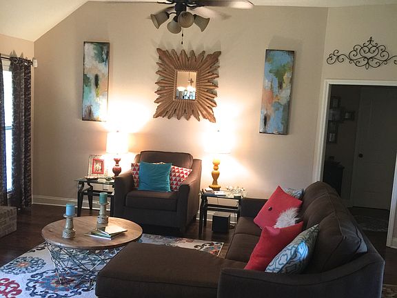 Nice home located in a quiet Cul-de-sac is now available to own. This 3 bedroom/2 bath home boasts over 1500 square feet. Spacious floorplan has heart of pine wood floors in the den, dining, and kitchen area. Living room has a beautiful gas fireplace with brick hearth and colonial style mantel. Kitchen has slab granite counter tops, lots of cabinet space, and stainless steel appliances. There is also a place to eat at the counter for two barstools. Eat in dining area has a beautiful French chandelier. Main bedroom is nice sized, large walk in closet, and En Suite bath. The En Suite bath has a jetted tub, separate shower and dual sinks. Nice sized guest bedrooms and closet space. Covered back porch area leads out to a large fenced in backyard. Perfect place to relax after working all day. Ashbrooke is a great neighborhood offering 2 community pools, splashpad, playground, and lake for fishing. This home lies in a USDA area. Call today for more information!