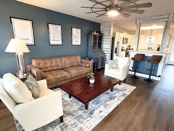 Step inside through the front door and you'll find yourself in the main-level living room, which effortlessly flows into the bar and kitchen entertaining area—an ideal layout for hosting memorable get-togethers. Adjacent to the spacious kitchen, equipped with abundant countertop space for all your culinary endeavors, you'll discover a glass door leading to the fenced-in backyard and the elegant formal dining area.