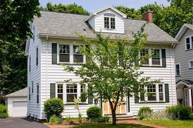 Beautifully renovated 1920's era Center Entrance Colonial. 2,400+ sqft includes three floors. 4 bedrooms. 3 full baths plus first flr. powder rm. Oak floors. Natural trim. Wood burning frpl. Formal Living & Dining rms. Updated eat in Kit. Sqft includes BONUS professionally finished 3rd floor with full bath. Brand new 2+ car detached garage. Brand new central air condition.