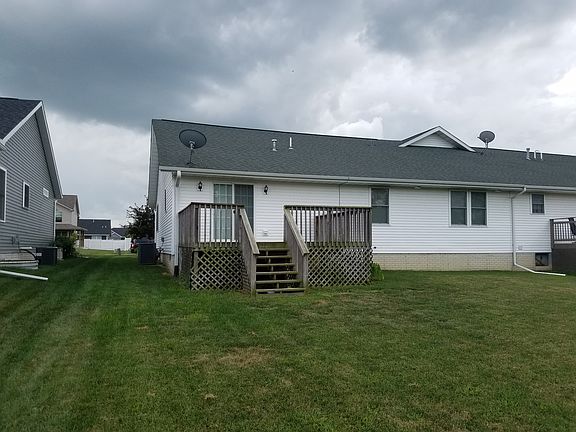This is the right side of a Duplex located in the Cottonwood subdivision off Muller Road in East Peoria. This beautiful 2-bedroom home features hardwood floors in both bedrooms and ceramic tile through-out the rest of the living space. Ceiling fans in each room and exceptional closet space. It includes a large mudroom / laundry room off of the garage. This is a must see home. 2 Bedroom 2 Bath Large Walk-in Closets in both bedrooms Laundry room has gas and electric Washer/Dry hookups Water softener Hardwood and Tile floor throughout Ceiling fans in bedrooms, kitchen and living room Excellent Lighting Fridge, Stove and Dishwasher included 12x16 Deck 2 stall garage / 500 Square Foot 1300 Square Foot Living Space
