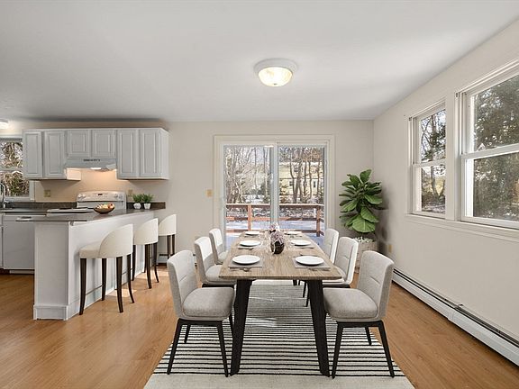 Nestled in a peaceful neighborhood near picturesque Lake Wequaquet, this charming Cape-style home offers easy access to swimming, fishing, and boating. Just minutes away are Craigville Beach, Barnstable Harbor, and the vibrant shops and restaurants of downtown Hyannis. The Cape Cod Mall and Hyannis Golf Course are also conveniently nearby, ensuring entertainment and leisure at your fingertips. This 6-room home boasts 3 bedrooms and 2 full baths, thoughtfully designed for comfort and functionality. The first floor features an open floor plan with a vaulted ceiling in the living room, creating a bright, airy space. The dining room, complete with sliders, opens to a spacious deck, perfect for outdoor gatherings. A full bath and a bedroom round out the main level. Upstairs, you’ll find two generously sized bedrooms, one with sliders leading to a private deck. Recent updates include fresh interior paint, new flooring throughout, a new dishwasher, and an outdoor shower. This move-in-ready!