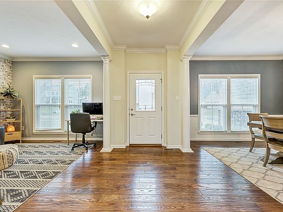 Beautiful & spacious luxury home in Stafford Park. The open floor plan, crown moulding, tuscan columns and rich hardwood floors greet you for an impressive welcome. Beyond the dining room and flex space, the heart of the home is a grand yet cozy family room w/floor to ceiling stone fireplace. Gourmet kitchen equipped with a double wall convection oven, SS appliances, oversized island, granite countertops for days & ample cabinet space. Enjoy mornings in the breakfast room drenched in natural light, leading to the composite deck. Main FL 5th BR/office w/access to a full bath. Upstairs the primary suite w/WIC is a private sanctuary for R&R w/tiled shower & oversized soaker tub. Each 2nd FL BR has a WIC! BR #2 has a bonus ensuite full bath, perfect for overnight guests. The walkout basement has an additional 1200 sq ft of living space w/full bath complete & wet bar rough-in. In-ground heated pool (automatic cover) & patio entertaining space w/TV hook up create a dream back yard oasis!