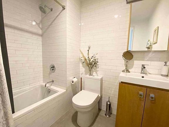 Deal of the month!! August 1 or 15th lease start This two bedroom and two bathroom on the third floor of an elevator building also boast a large private western facing balcony, perfect for hosting or enjoying outdoor dining. Entering the open layout apartment you'll notice the Grey satin-finished oak floors as well s the designer kitchen that features Arctic White quartz countertops with custom cabinetry with top of the line appliances. Central air and heat throughout provides pleasant and quiet comfort in every season. The master bedroom boasts an astonishing en suite bathroom that has white subway tiles with modern fixtures, deep soaking bathtubs and expansive custom vanities. Nearby trains include the L at Wilson Avenue ready to get bring you to Williamsburg or into Manhattan. The Halsey Street J train brings you to Williamsburg or the Manhattan in 9 stops or less.
