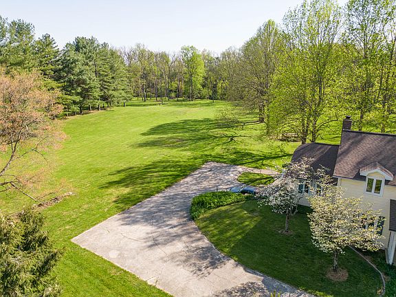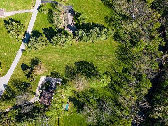 A rare opportunity! This 2 story well trimmed home sits on the largest lot in the highly desired Iron Works Estates. With over 4 acres of a park like setting backing to the Elkhorn Creek you can fish and kayak from your backyard! This traditional floor plan was built with quality and detail in mind. There is no shortage of space in this home. The beautiful hardwood floors offer a timeless finish. Entertaining is a breeze with formal living and dining rooms or enjoy the enclosed sunroom with fireplace for picturesque views. The spacious kitchen paired with large island combined with a hearth room with fireplace is a chef's delight. A full bath and office complete the main floor. The second story boasts three generous bedrooms, full bathroom and open bonus area. Plus en suite large primary suite which offers two closets and a sitting area. The finished basement includes a newly finished full bath, kitchenette and loads of flex space. There is no shortage for outdoor space with an oversized garage, golf cart storage, and 11x15 workshop and a 30x20 three stall barn. The 10x24 deck overlooks this incredible yard, fire pit and creek. Do not delay on this very special one owner home!