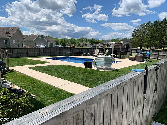 Welcome home to this custom ranch home featuring a 4 seasons sunroom,fiberglass pool nestled on over a half acre. Step into the foyer of this home and this will definitely be yours. The great room features a gas fireplace and is open to the kitchen boasting of an island with a breakfast bar and spacious eat in kitchen. The FROG features its own full bath. The primary bedroom is large and has an ensuite with jetted tub & separate shower.2 additional bedrooms and a guest bathroom is down the other end of the hallway.4 Season Sunroom provides year-round enjoyment. Fiberglass in-ground heated pool perfect for enjoying lazy summer days and entertaining guests. Stylish pergola with floating deck, ideal for grilling and relaxing in your backyard oasis. Fenced-in yard, offering privacy and security. 50 amp EV outlet in the 2-car garage, ensuring hassle-free charging for electric vehicle owners. 12x12 foot storage shed, providing ample space for storing outdoor equipment and tools. Prime location around the corner from a public boat ramp, making it easy for boating enthusiasts to indulge in their passion. This community has no HOA but amenities nearby include the new parkfeatures pickleball courts, a children's play area, natural playground, picnic pavilion, gazebo and restroom facilities. More than 4,000 feet of paved walking paths. Conveniently located minutes to the NC/VA border for easy access to Hampton Roads. Approx 55 minutes to the OBX or 30 minutes to Elizabeth City. This location is superior.Experience the comfort and charm of indoor-outdoor living in this Moyock gem. Schedule your private viewing today and make this your forever home!