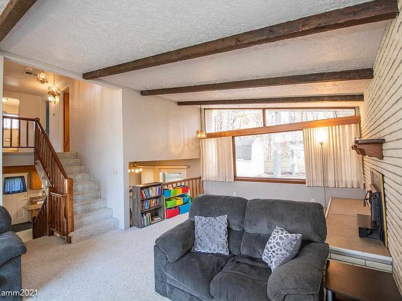 4 bed/2 bath home with double lot in wooded setting only steps away from biking/walking trail! Quad level with all the spaces - main level has open kitchen to dining area, full bath, den/office area, middle level has large living room with vaulted ceiling, fireplace, and overlooks den/office, upper level has 4 bedrooms & full bath, basement has rec area and laundry. From basement walk-into the crawlspace area for additional storage & easy access. Oversized garage is unique style with workshop & tandem 2 car parking. Large garden, grape vines, spacious shed, privacy fencing & mature trees adorn the yard.
