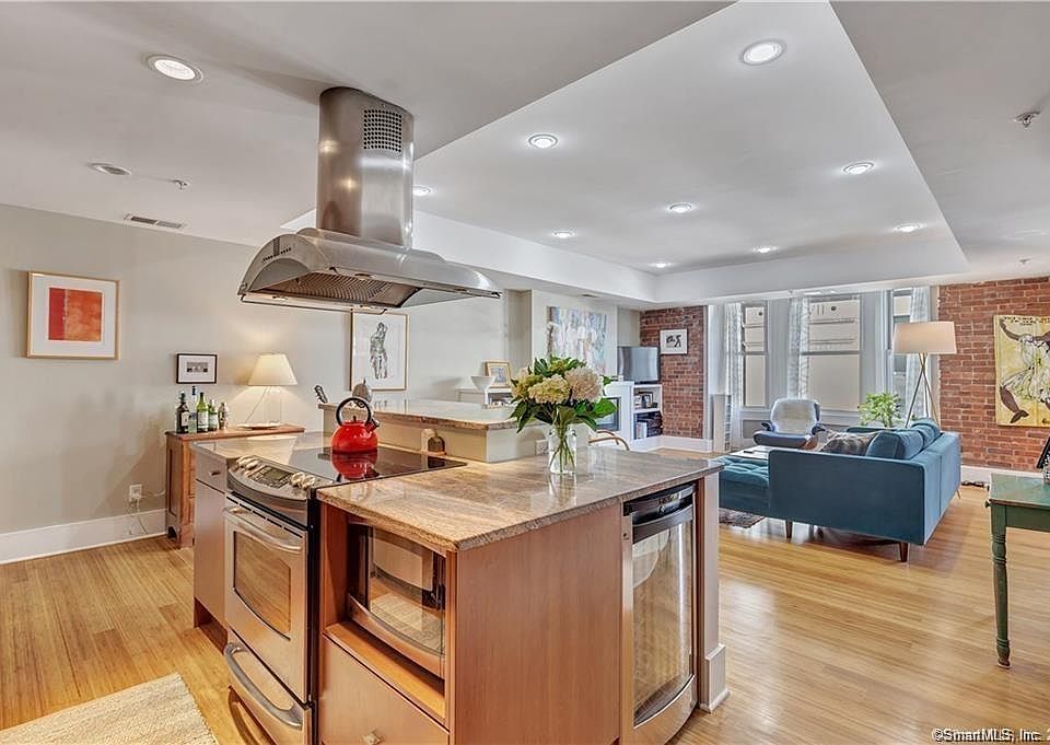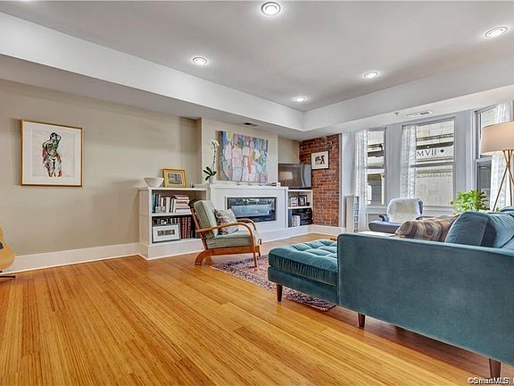 Exciting opportunity to own a Downtown New Haven loft condo at sought after 116 Crown Street. This chic unit, ideal for entertaining, has an open layout with exposed brick, polished bamboo floors, high ceilings, tons of natural light, recessed lighting & a contemporary half bathroom. A stunning bay window overlooks Crown Street from the large elegant living room with electric fireplace. The kitchen features stainless steel appliances, granite countertops & center island with gas cooktop & breakfast bar. Adjacent to the living room is a cozy space with a large window, perfect for use as a separate dining area. Two stylish bedrooms with great closet space share a modern full bathroom. The larger of the two bedrooms faces south & offers great sunlight and exposed brick. Laundry in unit. Located in the heart of Downtown New Haven, this trendy yet sophisticated unit is steps from popular restaurants, Yale, hospitals & shopping.