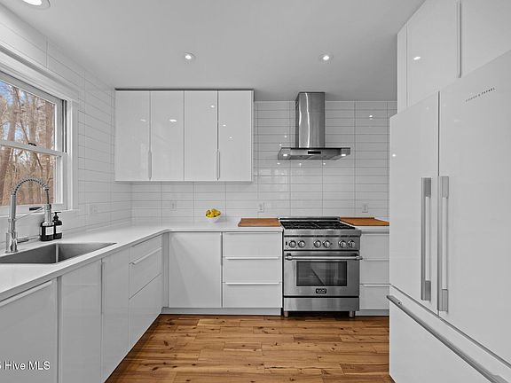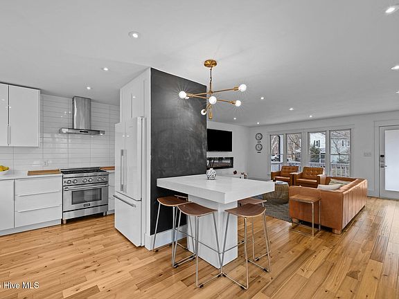 This beautifully renovated home in the heart of Chapel Hill's sought-after Culbreth Park neighborhood offers modern comfort and thoughtful updates throughout. It features 3 bedrooms and 2 fully updated bathrooms with tiled walls and floors, Kohler tubs, glass shower doors, chrome finishes, and new toilets. The custom kitchen is a chef's dream, boasting quartz countertops, soft-close cabinetry, built-in organizers, new appliances, a gas stove, and a sleek concrete island with bar stools. Smooth ceilings, dimmable modern lighting, and 5'' oak hardwood floors with fresh 6'' baseboards and custom molding flow throughout. Custom closets are thoughtfully designed to optimize storage and organization.