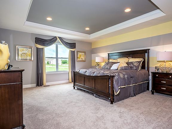 ,903 sq. ft. 4 beds, 2.5 baths. Deluxe master bath. 9’ framed lookout. Kitchen with stone arch at cooktop, crown molding, and butler’s pantry. 9' ceilings. Finished lower level with rec room and bathroom. Trey ceiling and sculptured ceiling. Hardwood flooring throughout. Stainless steel appliances. Satin nickel fishes. Bigger base boards. Zoned damper system. Painted, French doors. 10’ stone fireplace at 18’ open great room. Metal spindles throughout. Arches. Open stairs. Granite in kitchen. Window wall in great room. October occupancy. Photos are a representation and not of actual home.