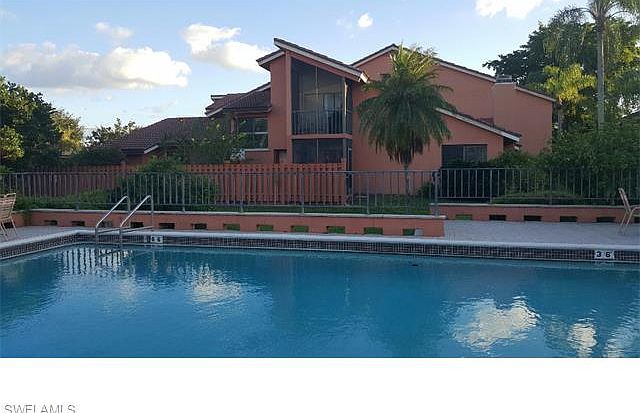 Rarely available townhouse in Sharondale. Great location in North Naples. Close to beaches and shopping. Feels like a single family home with vaulted ceilings in almost every room and over 2,000 square feet. Lots of natural light. All concrete second floor construction, not wood. Private courtyard entrance with beautiful landscaping. 2 story with the master bedroom on the 2nd floor. 2 huge walk in closets and 2 sinks in the master bedroom. Kitchen has beautiful cabinets, granite counter tops and mosaic glass tile back splash. Working wood burning fireplace. Heated pool only 30 ft from the home. Everything is in great condition. Unit has 2 skylights and 2 screened porches, 2 car carport, no garage but lots of storage inside and out. Pets ok with approval. Large dogs ok with approval. Only $114 per foot ! There is a great park only a few blocks away from the home!