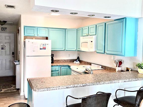 REDUCED PRICE TO SELL!!!! Turn Key unit with rental on the books! Make it your own home to live in this awesome One BedroomI/ One Full Bath Condo unit with storage galore ... it is a MUST SEE!!! It has a beautiful kitchen that is unique to the condos, with plenty of cabinet space not typically found in these units. It also has a built in microwave, cook top electric stove, recessed lighting over the bar and kitchen area. Luxury Vinyl Plank flooring through out, owner's storage closet, and don't forget to step out onto the balcony to relax a bit before heading off to the Private Beach House with Cafe, pool, and private beach access, or play Pickleball/Tennis/Shuffleboard, play the 18 hole mini golf course, or one of the 11 pools (5 heated)... whatever you chose to spend your day. Building has open parking and golf cart parking steps away from their unit. This awesome unit comes fully furnished, which makes it perfect to move into or an excellent Turn Key rental. Short term renters are allowed and owners may have pets (check with HOA for restrictions). New Windows and Sliding Door rated 200 mph were replaced in 4-2022, and building roof replaced 2019, Exterior building painted 2021. Located in the sought after Gulf Highlands Beach Resort sit in the hub of Panama City Beach. Gulf Highlands is surrounded by restaurants, shopping, grocery stores, entertainment, waterpark, public pier, public beach access, banks, post office, storage units, and more all in walking distance. A wonderful community to be apart of. If Age, SF, dimensions, etc. are approximate...If important, please verify.