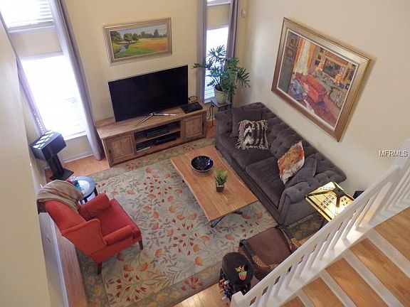 This charming 3 bedroom 2.5 bath townhouse is conveniently located to shopping, dining, and schools. Freshly painted walls, trim, and doors and new door hardware. Open floor plan with hardwood floors throughout, tile kitchen and baths, and vinyl only in the laundry room. Downstairs you have a formal dining/living room with an opening/bar into the kitchen. The kitchen is spacious with tons of counter and cabinet space. Access to the screened-in porch is through the kitchen and it overlooks the pond in the backyard. Off of the kitchen is the family room with 20' volume ceiling and lots of natural light. Upstairs you will find a large master suite, 2 guest rooms, and the laundry room. The master suite has a large walk-in closet and bathroom with a dual vanity. Structure can accommodate a fireplace addition. Lawn maintenance, insurance, pest control and annual pressure washing are included in the HOA fees. Low maintenance living with nice amenities including a pool. Notes: Buyer and or Buyers agent to confirm all information deemed important including but not limited to schools and square footage and lot size. All offers need to be accompanied by proof of funds or lender preapproval letter.