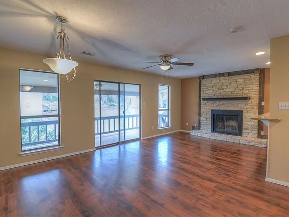 Freshly updated townhouse in fantastic location. This two bedroom, two and half bath home has new appliances, flooring, granite, tile, bath fixtures, paint and so much more. The split level design allows for wonderful views of Slick Rock and the beautiful Hill Country. Sit on the upper deck and enjoy the southern summer breeze or have a cup of coffee on your private patio off the master bedroom. Winters will be warm and cozy with two wood burning fireplaces. One located in the living area and the other in the master retreat. The hard to find one car garage allows for plenty of extra space for storage or a work area. The bonus room will make a great office or hobby room. Large side yard is perfect for the furry companion. The El Jardin townhouse complex has a large common area located on edge of golf course with outdoor grill and seating. No monthly HOA fees. Owners pay $200 quarterly to cover yard maintenance. Must see to appreciate