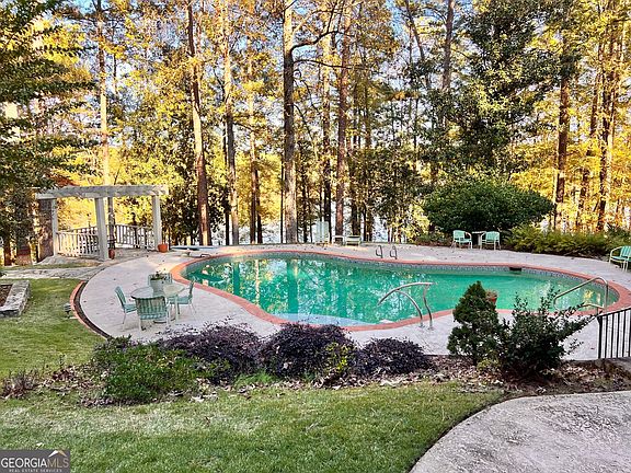 Experience timeless elegance and lakeside living at its finest. Perfectly situated on a deep-water lot in one of LaGrange's most desirable lakefront communities, this one-of-a-kind home combines lodge-style architecture with modern luxury. Featuring 5 bedrooms and 6 full baths, this custom home spans over 5,400 square feet and showcases stunning craftsmanship throughout. Enjoy two luxurious primary suites-each with private balconies, walk-in closets, and stone fireplaces. The grand vaulted living room with floor-to-ceiling windows offers panoramic views of West Point Lake, while the chef's kitchen and formal dining area make entertaining effortless. French doors open from nearly every room to the patio, pool, and lakefront, creating a seamless indoor-outdoor flow. The backyard retreat includes a gunite pool, extensive stone hardscape, lush landscaping, and a private tennis court. Additional features include a wet bar and game room, office/study, two-car garage, spiral staircase, and skylit baths with whirlpool tub. Just minutes from downtown yet perfectly private, this is the ultimate lakefront sanctuary-where every day feels like a getaway.