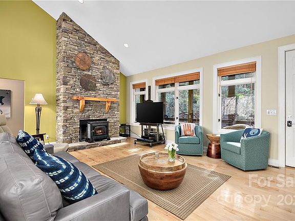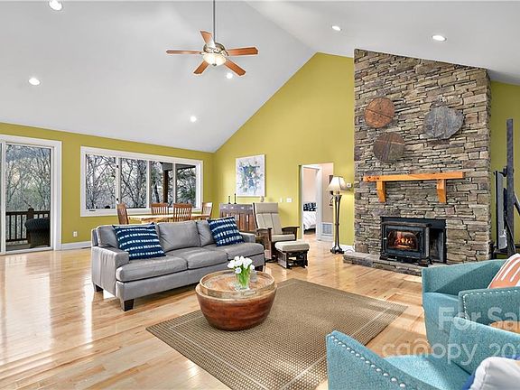 Beautiful mountain home in desirable Buffalo Mountain. Open floor plan, living room with cozy soapstone wood-burning stove fireplace, dining area, kitchen with upgraded appliances, plenty of cabinet space, skylight and breakfast bar. Large, covered rear deck to enjoy the seasonal views, mountain breezes and nature all around. Primary bedroom with dual closets and bath with shower and tub. Second bedroom on main with unique loft space and ladder. Vaulted ceilings with a few ceiling platform shelves to showcase artwork and decor. Nice walk-out basement with laundry room and third en-suite bedroom with gas stove, full bath, sitting area plus a bonus room/office. Home offers outdoor space for relaxing or entertaining on the screened porch or covered rear deck. Double garage in basement. Home just updated in Fall of 2021 with high-efficiency HVAC with electronic air cleaner, ionizing air purifier and steam humidification system. Minutes to downtown Asheville and the Blue Ridge Parkway.