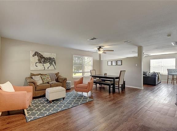 2-story home located on cul-de-sac in highly sought after Creekside Park. Wide open floor plan featuring 4 bedrooms, 2.5 baths with 2 living, 2 dining & loads of windows allowing for abundant natural light. Large eat-in kitchen with breakfast bar open to family room. Spacious master suite with room for seating area includes double vanity, garden tub & walk-in closet. Recent updates include fresh designer paint on both exterior & interior. Entertain out back on patio in the private backyard. Community amenities include pool & park. Hays ISD.