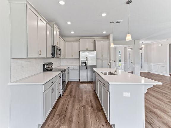 The Brookdale is an open layout floor plan, with three bedrooms on one side and the primary suite on the other. Additionally, this home features an open great room with an optional covered porch, a kitchen and breakfast area, and a flex space for a dining room, study, or however you dream using it.
