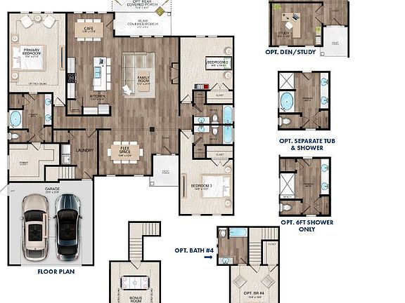 Our Charleston II Plan is an expansive split design ranch style home with primary suite on one side of the home and the additional bedrooms on the other side.. This plan also includes an upstairs bonus room with a full bath that could easily be made into a media room or guest room.